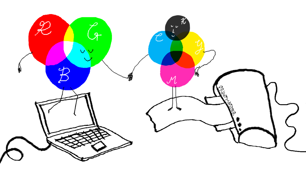 Hầu như mọi máy in trên thế giới đều sử dụng hệ màu CMYK – ngay cả máy in màu tại nhà hoặc văn phòng của bạn. Khay mực của mỗi máy in chứa bốn hộp mực khác nhau có nhãn Cyan (C), Magenta (M), Yellow (Y) và Black (K – là màu đen). Trộn các sắc tố Cyan, Magenta và Yellow nguyên chất sẽ tạo ra màu đen bằng cách hấp thụ tất cả các màu.