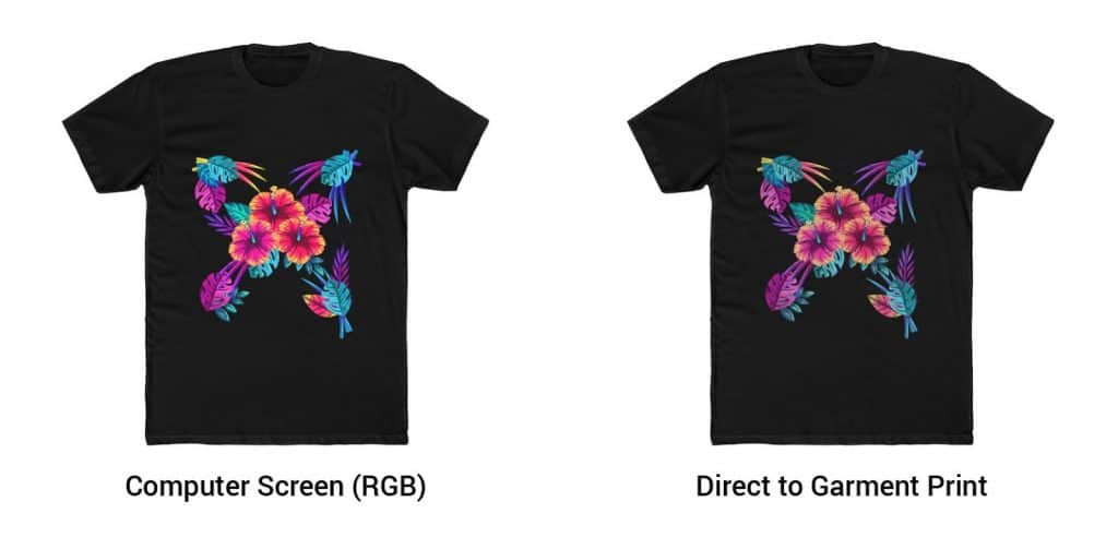 Đối với tất cả các sản phẩm mà bạn muốn hình in có nền trong suốt, chẳng hạn như trang phục (áo thun, áo hoodie,…), bạn sẽ phải sử dụng định dạng PNG. Thật không may, PNG không hỗ trợ cấu hình màu CMYK. Tuy nhiên, đó không phải là vấn đề quá lớn. Trước khi in, mọi hình ảnh đều trải qua quy trình hình ảnh raster gốc (RIP) của thiết bị in để chuyển đổi tệp PNG có cấu hình màu RGB thành cấu hình màu CMYK.